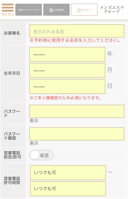お客様名やログインパスワードなど、登録情報を入力してください。